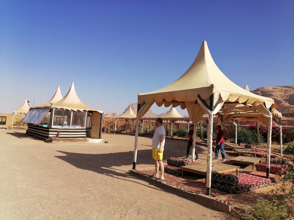 Falling approximately 600 meters from the high plateau of Ras Al-Naqab, Wadi Rum stretches 2 kilometers by 130 kilometers. This series of valleys covered in softly colored sand, punctuated by huge, imposing, fantastically shaped mountains (jabals), is one of the most memorable destinations in Jordan, and has been so since the dawn of time. Deep in the valleys, far from any visible human habitation, it is possible to believe the view has not changed much since the beginnings of human habitation in the Valley of the Moon , approximately 800 BC.
